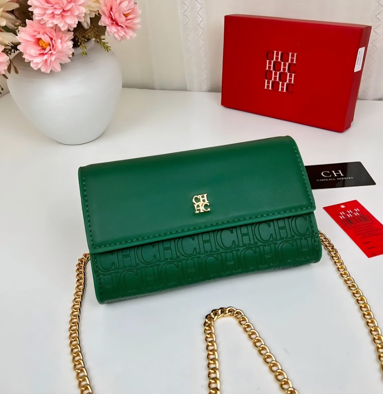 Dark green leather purse from CH Carolina Herrera.(Ch Bag# )